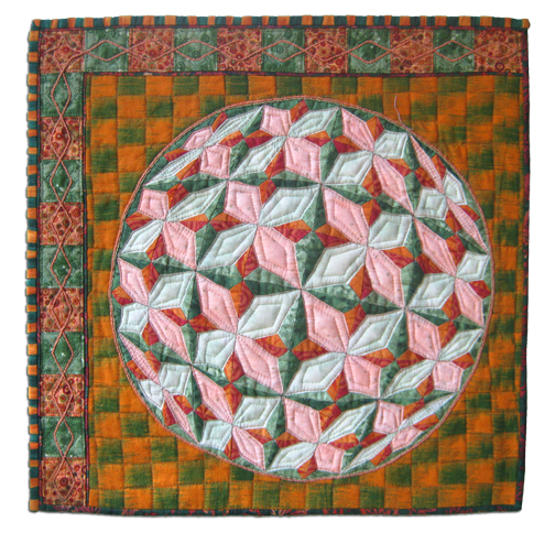 Kusudama are decorative paper balls made for special occasions. They show the mastery of the origami artist in using simple paper squares. Likewise, the quilt maker uses fabric as a way to express an inner vision, of showing others how we see things. Quilts function as both an artistic viewpoint and a way of showing others we care. Kusudama represents how a craftsman and his medium work together in that expression, an alliance of artist and material.