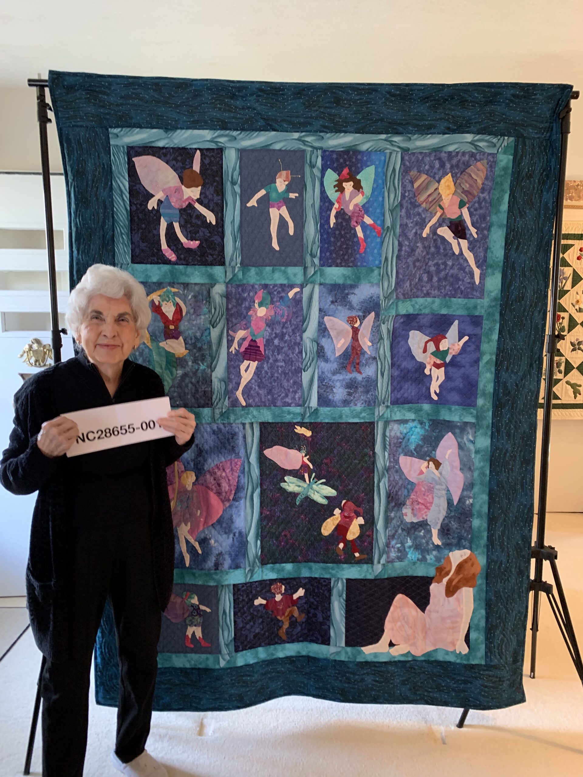 In every presentation I give on behalf of the Quilt Alliance, I share two beliefs that guide our mission: Quilts are historical documents, carrying vital information about the lives, families, communities, and cultures of their makers. Most quilts outlive their makers, making it essential to preserve not only the quilt but also the story of its creator. After a quiltmaker has passed away, an undocumented quilt risks becoming anonymous—a one-of-a-kind textile with no story attached. Through labeling, photography, videography, and oral history, Quilt Alliance projects ensure that quilts and their makers are remembered, not forgotten. I’m never more aware of the importance of our work than when a quilter we’ve documented passes away, especially when that quilter is a friend. On January 21, 2023, I interviewed Thelma Luciana, my third-grade teacher, for the QSOS oral history project. Thelma’s daughter, Lynda Reilich, had contacted me a few months before to arrange the interview to commemorate Thelma’s 90th birthday. On the day of the interview, I visited Thelma’s beautiful 1950s home in my hometown of Morganton, nestled in the foothills of the Blue Ridge Mountains of North Carolina, where she and her late husband, Jim, raised Lynda and her sister Cathy. The Luciana home was filled with Thelma’s quilts — on walls, beds, shelves, and handmade quilt racks made by Jim. I got a fun tour of Thelma’s large collection of works, all hand pieced, appliqued, and quilted. Also neatly and artfully displayed around the house were treasured family quilts, dolls, and miniature furniture. We set up a quilt stand with the piece that Thelma had chosen as her “touchstone quilt.” Dream of the Thistledown Fairies would serve as the starting point for our interview. Our interview was delightful. I loved learning about Thelma’s history; how she learned to sew and quilt from the women in her family in her hometown, nearby Black Mountain, NC. I was so grateful to Lynda for contacting me and setting the documentation session into motion. We sent out a press release to the two local newspapers, and both ran stories about Thelma’s interview. The Burke Quilters Guild honored Thelma by hosting me at one of their meetings, and I played back the interview for the group. You can watch the video recording, explore the full interview, and see more photos of Thelma’s touchstone quilt on the QSOS website. Thelma Luciana passed away in her lovely home on August 22, 2025. Her QSOS interview is mentioned in her obituary, and her family displayed Dream of the Thistledown Fairies and many of her quilts and treasures at her memorial service. Thelma will be missed by her family, former students like me, her devoted friends, and fellow quilters, but her story will never fade away, and her quilts will never be called anonymous.