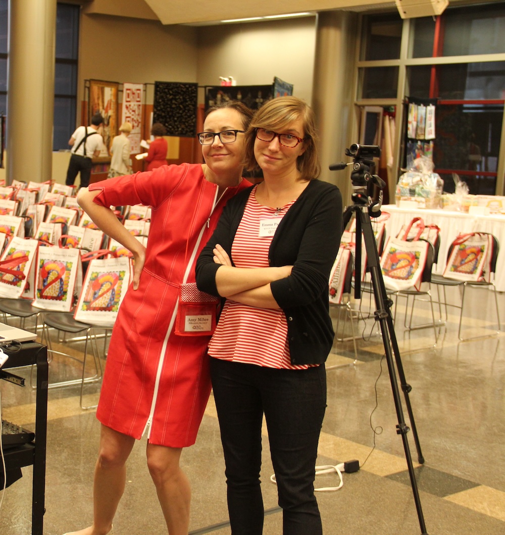 QA staffers Amy Milne and Emma Parker posing at Quilters Take Manhattan 2013