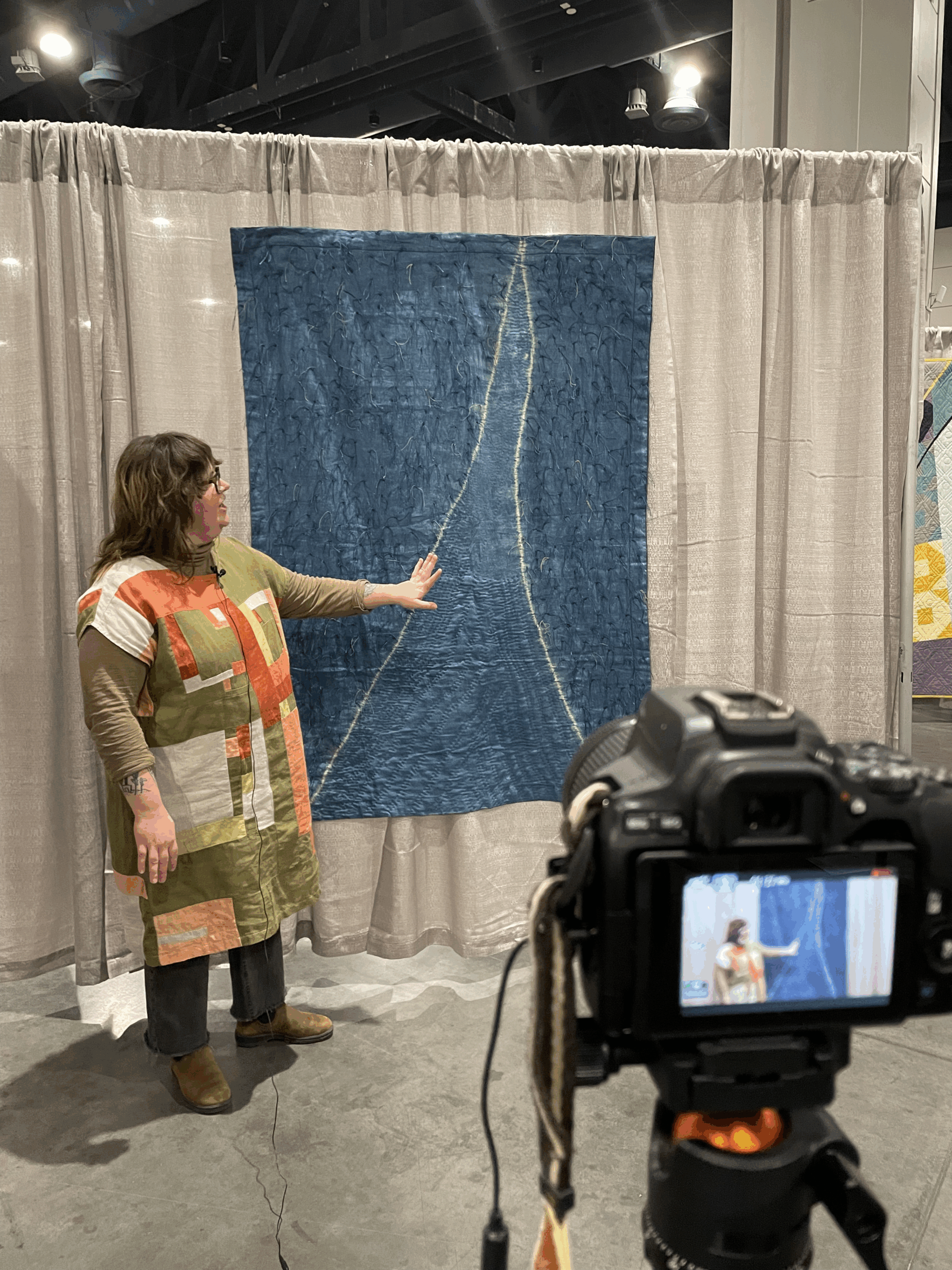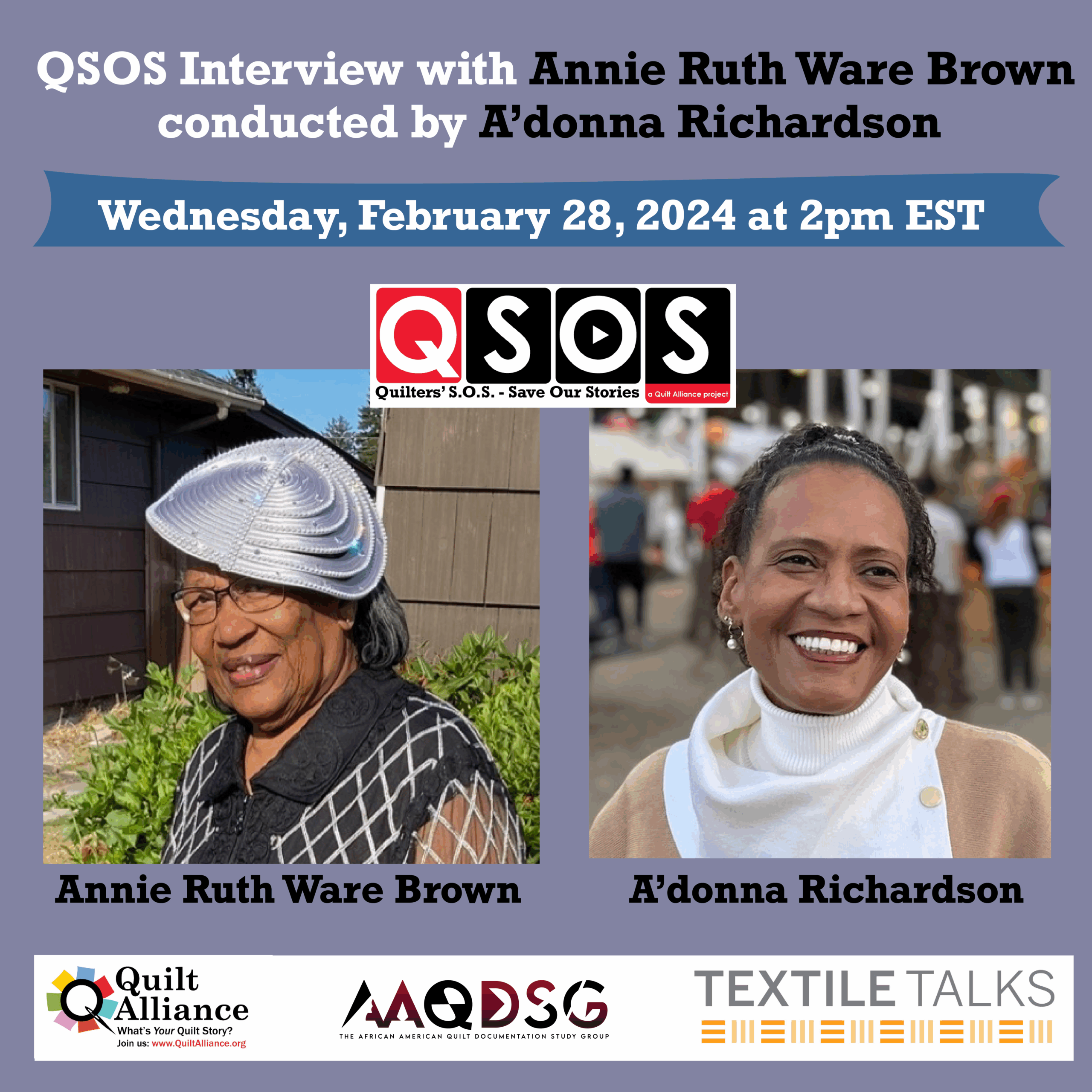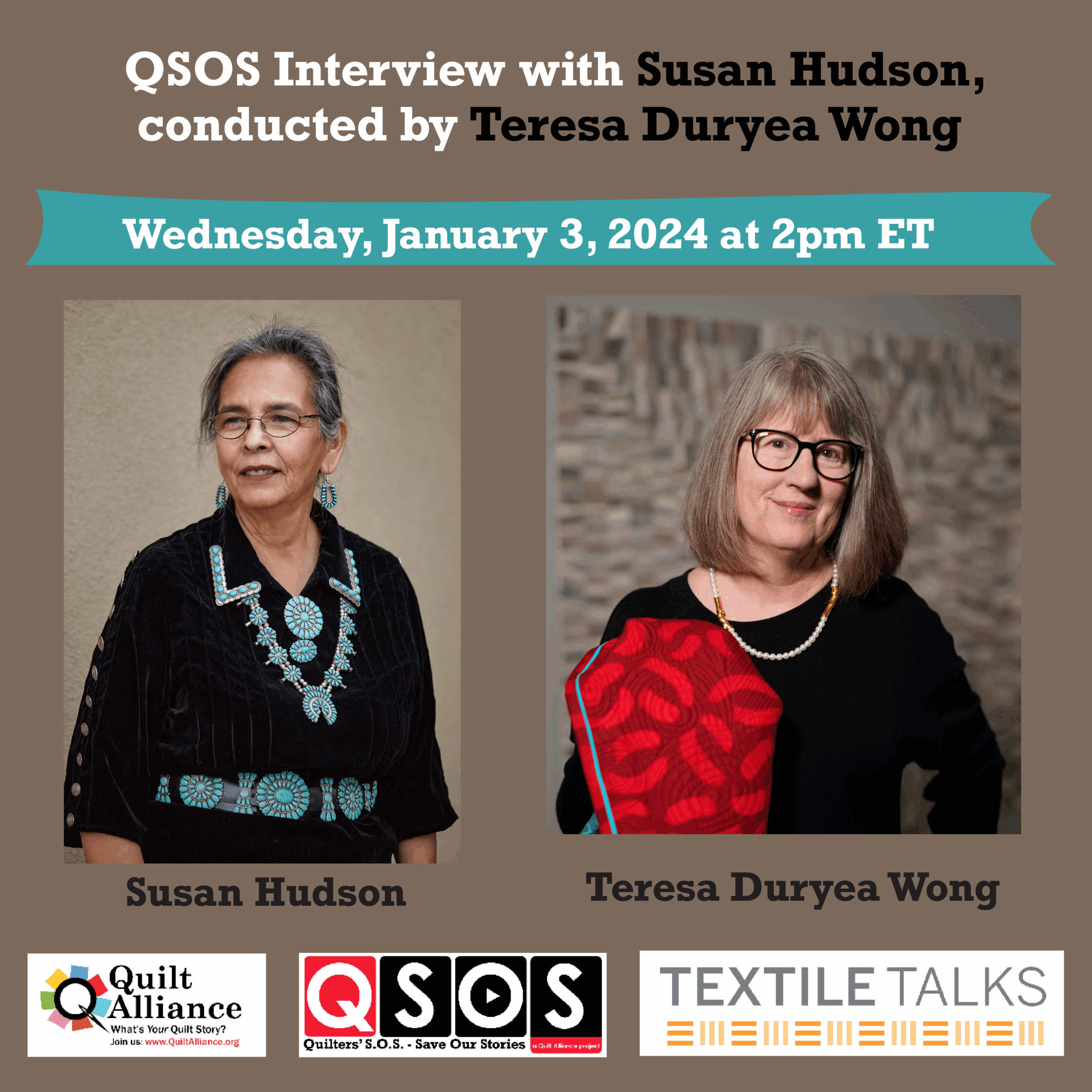 Last week we launched our very first blog hop. Our stellar list of bloggers did a fantastic job to raise awareness of our annual fundraising event, Quilters Take Manhattan (QTM) and the Quilt Alliance mission. The QA Blog’s giveaway winner is: Denneen (Denny) Peterson! Because the Quilt Alliance is all about documenting, preserving and sharing the stories of quilts and their makers, I asked Denny to tell us her story. Denny Peterson and her husband Bill Meek I live in Sahuarita, Arizona. My husband and I belong to the Tucson Quilters Guild. We also have a small group of quilting friends who get together at each other’s homes approximately monthly to work on quilts, visit, and eat! My mother and husband quilt, too. My mother taught me to sew and she started quilting after I did. She makes some of the most wonderful colorful quilts! My husband was surrounded by fabric and sewing machines and went along with me to sew days for years before he started by quilting a table runner for my mother on my Bernina. Now he designs and makes his own quilts and does quilting for others on his longarm (a power tool for fabric, you know). I make all kinds of quilts that you can make on the machine–traditional and contemporary pieced and applique are on the list, but my current favorites are art quilts depicting buildings, animals, and landscapes. We attend local area quilt shows, including the Tucson Quilt Fiesta and the Valley Quilters Guild show (Green Valley, Arizona). We also attend Road to California most years. Last year my husband and I were Artists in Residence at Hubbell Trading Post National Historic Site in Ganado, Arizona and at Petrified Forest National Park near Holbrook, Arizona. We spent two weeks living in historic housing at each location, gathering inspiration, designing and making quilts, meeting with park visitors to talk about quilting, the AIR program, and the parks; and then we made quilts to give to the park in exchange for housing and access to the parks. Here is a photo of my husband Bill Meek and me with a quilt (Shared Heritage) that we made as a result of our stay at Petrified Forest. That quilt has an informative label! Thanks again so very much! A list of all QTM Blog Hop Participants and links to their posts can be found here. Didn’t win? 🙁 Good news! You can support the Quilt Alliance and enjoy Quilters Take Manhattan from home by purchasing a QTM Moda Home Ticket today. Purchase your Home Ticket here. The QTM Moda Home Ticket provides a chance for those who can’t make it to the Big Apple to experience their own home slice of the event. Home Tickets cost $35 ($30 for QA members). You will receive the QTM Goody Bag, packed with samples and treats from all of our sponsors, by mail in late September, Home Ticket holders will also receive priority access to online video of our Sunday with Sponsors event (sent via email link 2 weeks after event), and are entered to win select door prizes. Please note: this year’s Home Ticket will not include footage of QTM lectures and interviews due to the prohibitive cost. Home Ticket holders play an important role in supporting the work of the Alliance–thank you! Posted by Amy Milne Executive Director, Quilt Alliance…