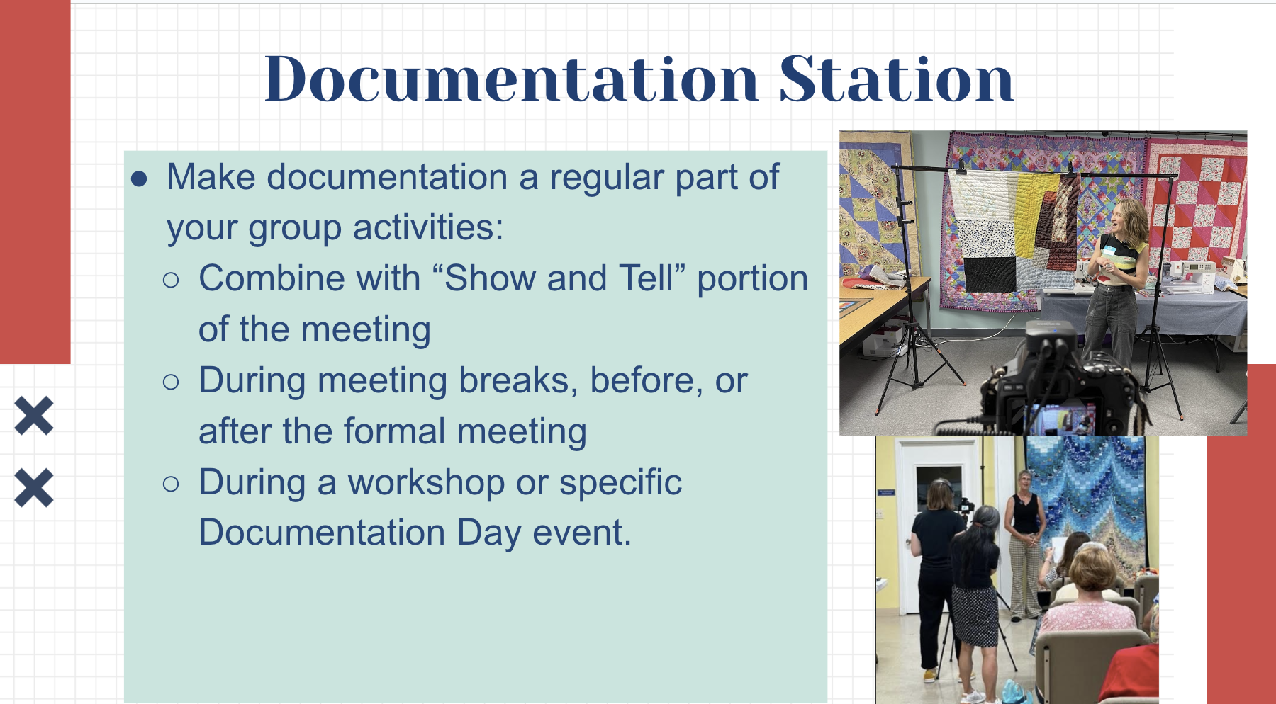 • Hold quilt documentation days in public places like libraries, churches, schools, or local arts councils