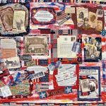 There was also another piece of African American military history that I have in this quilt that is about women. There was a woman whose name, there is some dispute about her name but generally she is known as Cathay Williams who served as a man. She was an African American woman who disguised herself as a man and actually enlisted in the U.S. Army during the Civil War. She served for about two years before she became ill and was injured and was mustered out in 1868. It wasn’t discovered who she was, or that she was a woman until she applied for her pension many years later and then it was discovered that she was not a man, William CafĂ©, which is how she enlisted but she was Cathay Williams, a woman and there were other women that we know who served in the Civil War and disguised themselves as boys or young men and enlisted. There are probably more that we will never know because they died or they mustered out and no one ever knew. She is one that has been documented so it is known. These two pieces have similar imagery. The letter with my father’s picture is also in this piece. I don’t always have him in all the work but I usually have him or my uncle, something from one of them in the work because it was finding my uncle’s selective service card and the letter from my father and my father’s pictures of him in uniform and his friends, my uncles pictures who was in the emergent marines, finding that material in my grandmother’s house just sparked something in me as an artist. I didn’t know what I wanted to do with it when I found it and it took a few years for it to come to the forefront and come back to life and become part of my art work. These two pieces are related. I don’t think I’m going to do another inauguration quilt, I think I’m done and I think I have several mixed media pieces on the inauguration so I think my inauguration series is done. That is good. [laughs.] I had fun doing them and I can’t wait for the quilts to come back home so I can see them again. I miss them. [laughs.]