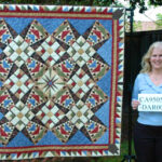 MKD: Well, it’s interesting because I have two sons and you wouldn’t necessarily think they would get too involved, but actually from a very early age they’ve been hanging out with me. Took them on their first Shop Hop [stopping at various quilt shops over a given period of time.] when they were very young. I had to bribe them with Game Boys [hand held video game machines.] but they came. They know what a fat quarter is. They know to stay out of the sewing room sometimes when Mommy’s quilting. [laughs.] But they do help me. Lots of times with basting my quilts because if it’s sort of large I need to have a couple of extra pair of hands so they know, they know how to baste a quilt. I have had them do design work for me. One of my sons actually designed one of my patterns, one of my quilting patterns, a quilting motif for me, because he’s a pretty good artist. And lately, as I mentioned, he’s been trying longarm machines out at the different quilt shows and I think he could be very good at longarm if he choose to do that. In fact he would like to have a machine to maybe get a little employment maybe?