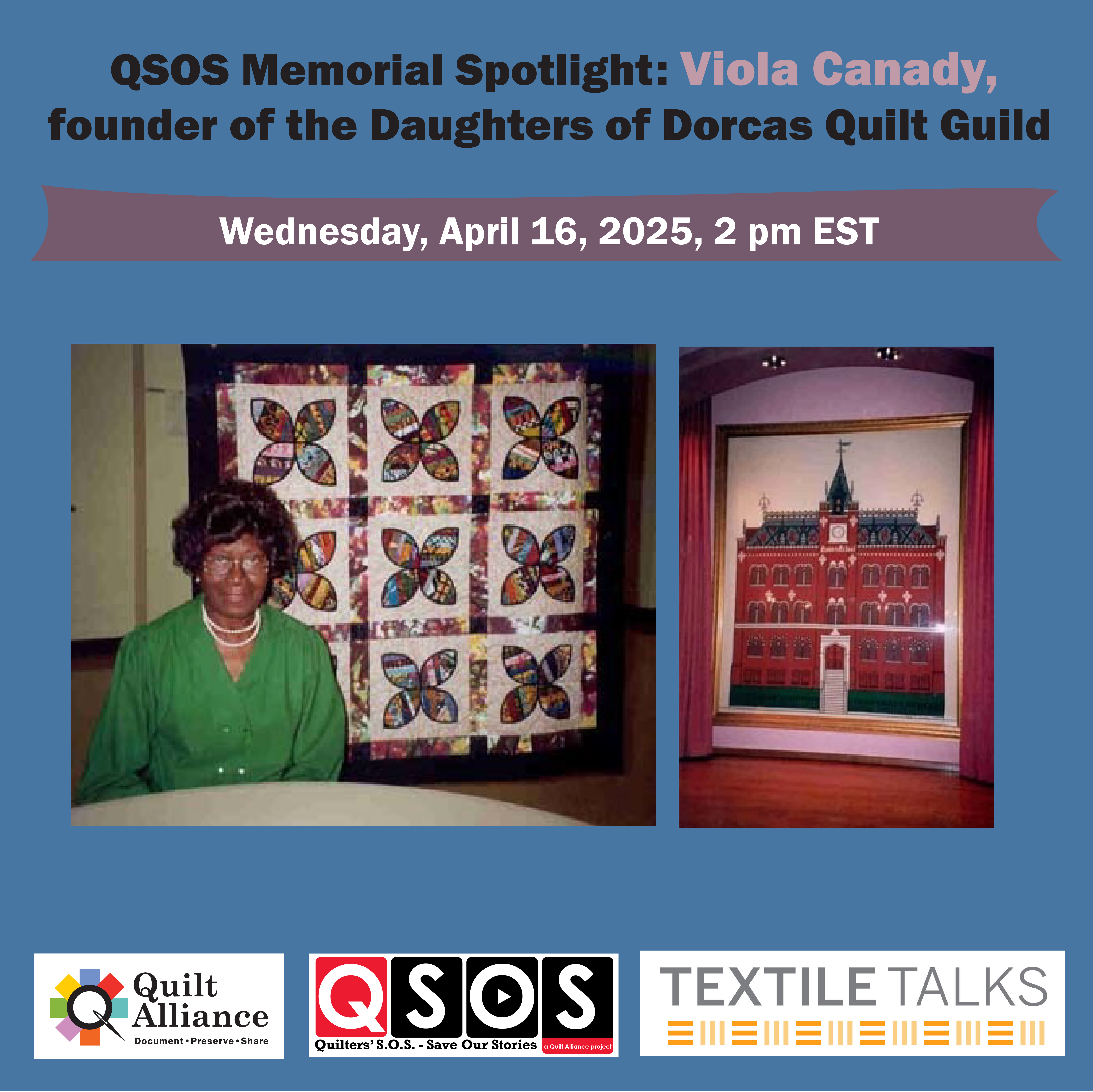 Dear friends and family of Viola Canady, you are invited to share your remembrances for the first QSOS Memorial Spotlight program. Our goal is to remember and honor past Quilters’ Save Our Stories (QSOS) oral history interviewees.Ā