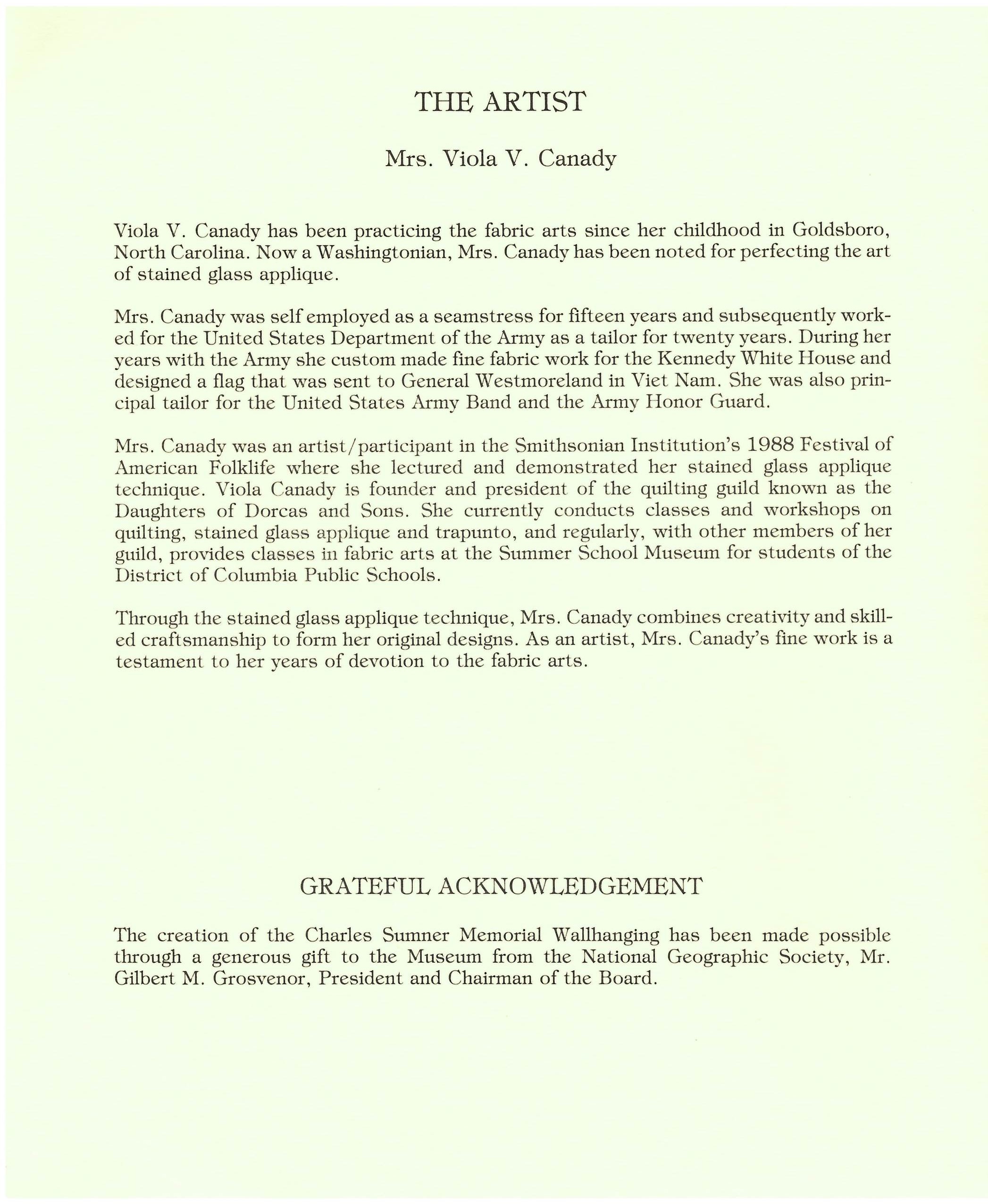 Charles Sumner Memorial Wall Hanging Dedication-Artist Statement